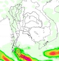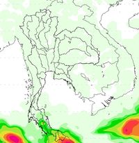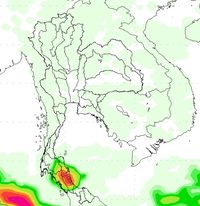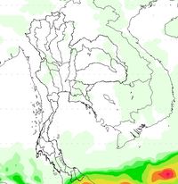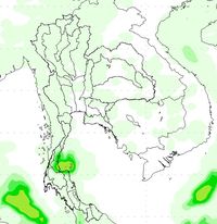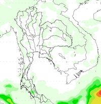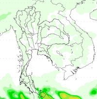 ผลการคาดการณ์เมื่อวันที่ 2 ธ.ค. 56 พบว่ามีกลุ่มฝนบริเวณภาคใต้ตอนล่างตั้งแต่วันที่ 2-5 ธ.ค. 56 หลังจากนั้นปริมาณฝนลดลง