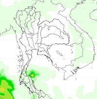 ช่วงวันที่ 3-6 ธ.ค. 56 มรสุมตะวันออกเฉียงเหนือกำลังค่อนข้างแรงพัดปกคลุมอ่าวไทย และภาคใต้ ประกอบกับมีหย่อมความกดอากาศต่ำปกคลุมชายฝั่งประเทศมาเลเซีย ทำให้ภาคใต้บริเวณจังหวัดนครศรีธรรมราช พัทลุง สงขลา ปัตตานี ยะลา และนราธิวาส มีฝนตกหนักในหลายพื้นที่