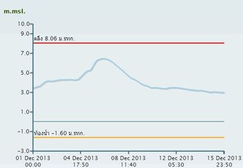 มากใ่นช่วงวันที่ 3-5 ธ.ค. 56 โดยมีปริมาณน้ำไหลเข้าสูงสุด 42.45 ล้าน ลบ.ม. ในวันที่ 4 ธ.ค. 56