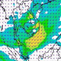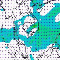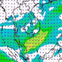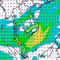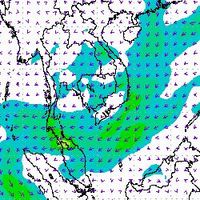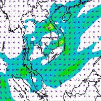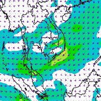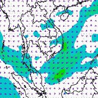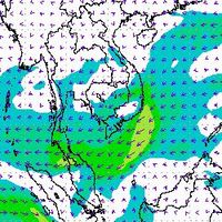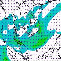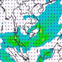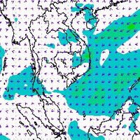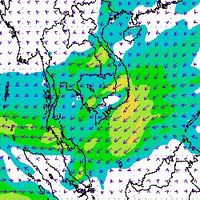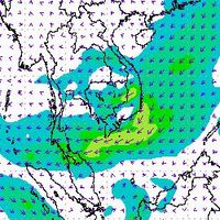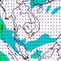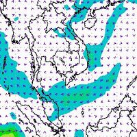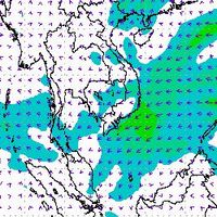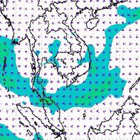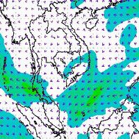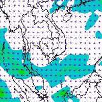 จากแผนภาพแสดงความเร็วลมที่ระดับความสูง 1.5 กิโลเมตร จากระดับน้ำทะเล พบว่ามรสุมตะวันออกเฉียงเหนือที่พัดปกคลุมบริเวณภาคใต้ตอนล่าง มีกำลังค่อนข้างแรงในช่วงต้นเดือนธันวาคม โดยความเร็วลมสูงสุดอยู่ที่ประมาณ 60-80 กิโลเมตรต่อชั่วโมง