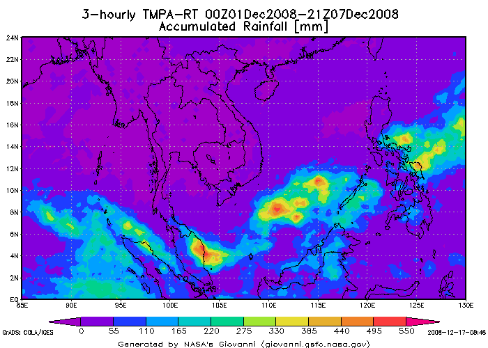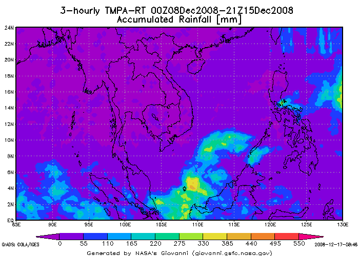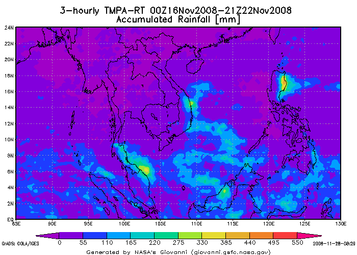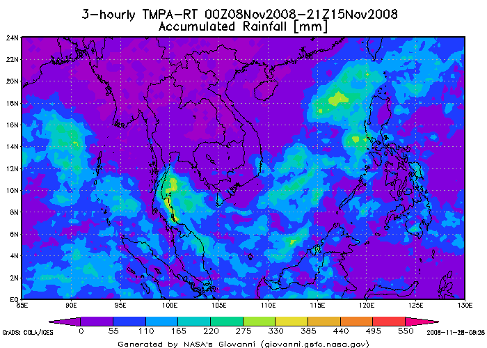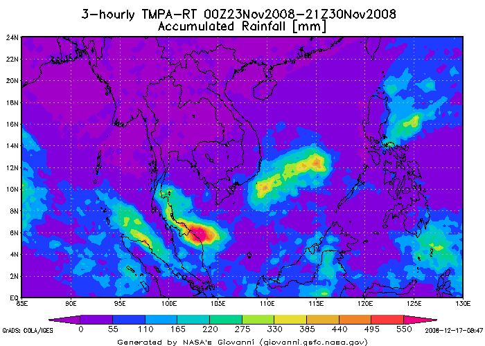 หนักมาตั้งแต่วันที่ 30 พฤศจิกายน จนถึงวันที่ 1 ธันวาคม 2551 นั้น เนื่องจากลมมรสุมตะวันออกเฉียงเหนือที่พัด