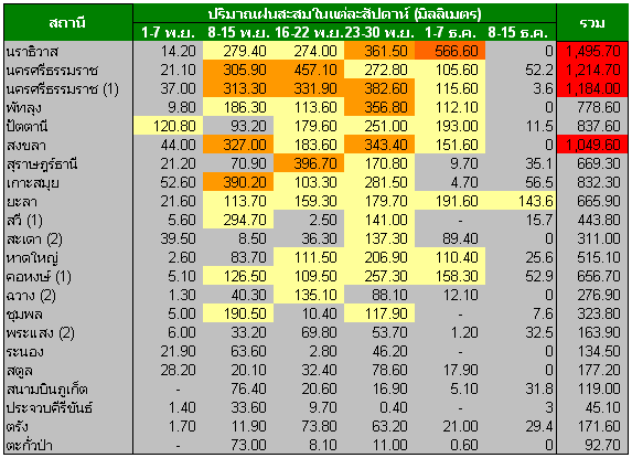 ภาคใต้ แจ้งว่า ในช่วงตลอดทั้งวันและคืนที่ผ่านมา มีภาวะฝนตกลงมาอย่างหนักในพื้นที่ทั้ง 13 อำเภอ ส่งผลทำให้มีปริมาณน้ำท่วมขัง