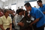 จากนั้น นายระพี ผ่องบุพกิจ ผู้ว่าฯ ศรีสะเกษ ได้นำสิ่งของเครื่องอุปโภคบริโภค และยาเวชภัณฑ์ประจำบ้าน ไปมอบให้แก่ชาวบ้านผู้ประสบภัยน้ำท่วม ที่บ้านทามจาน ต.สมอ อ.ปรางค์กู่ ที่ประสบภัยน้ำท่วมจากอิทธิพลพายุดีเปรสชั่นกิสนาทำให้มีฝนตกหนักในช่วง 2-3 วันนี้เช่นกัน