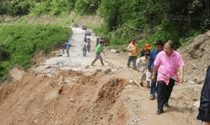 ขณะเดียวกันน้ำฝนยังทำให้ถนนเชื่อมระหว่างหมู่บ้านหนองสองห้องไปยังหมู่บ้านอื่นๆในตำบลธาตุ กลายเป็นหลุมเป็นบ่อ ทำให้การสัญจรของยานพาหนะในเส้นทางดังกล่าวเป็นไปด้วยความยากลำบากด้วย