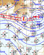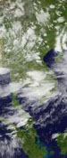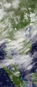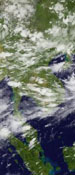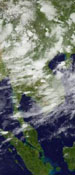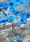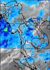 | จากภาพถ่ายดาวเทียม GOES-9 จะเห็นได้ว่าช่วงต้นเดืือนสิงหาคมมีกลุ่มเมฆปกคลุมพื้นที่ตอนเหนือของประเทศไทยค่อนข้างมาก ทำให้เกิดฝนตกและเกิดน้ำท่วมในหลายพื้นที่ ดูรายละเอียดเพิ่มเติม |