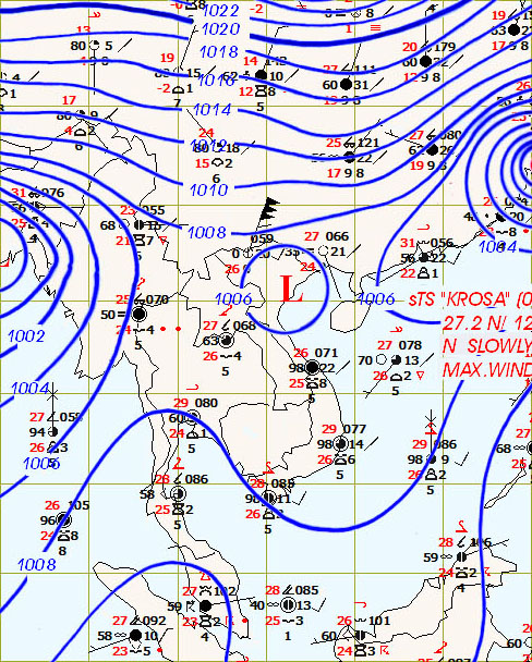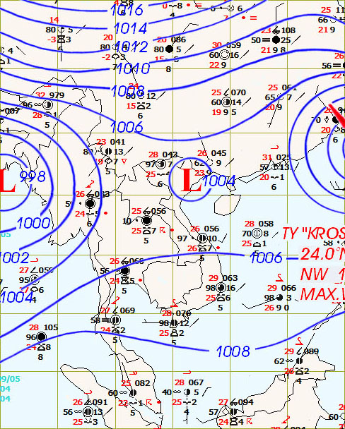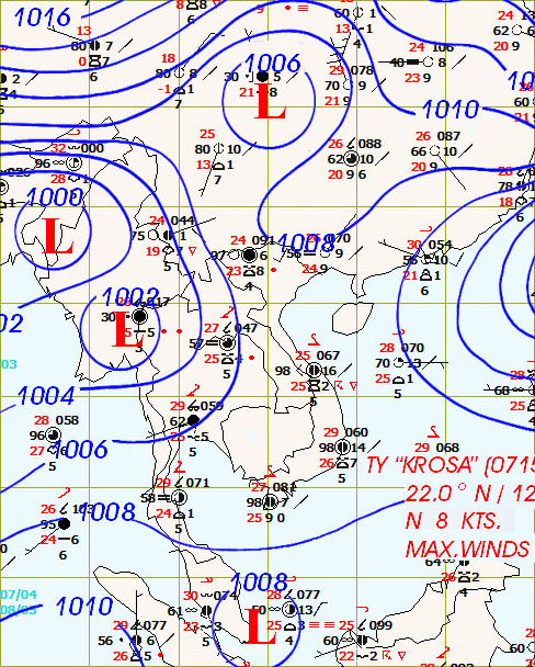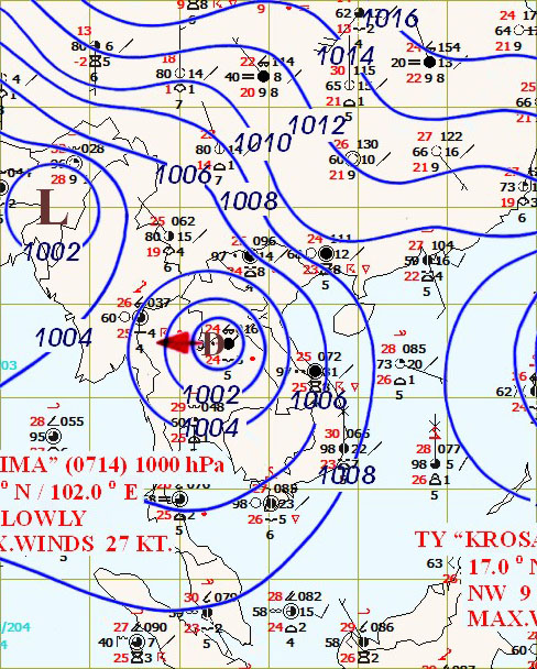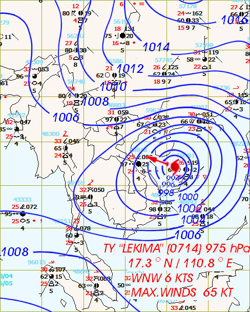 จากภาพแผนที่อากาศจะเห็นได้ว่าในวันที่ 3-4 ต.ค. 50 พายุดีเปรสชั่น "เลกิมา"