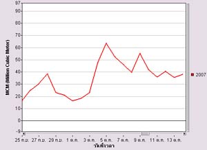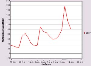 แต่พบว่าปริมาณน้ำฝนยังน้อยกว่าปี 2549 ที่มีน้ำฝนสะสมถึง 1,451 มม. ขณะที่ช่วงพ.ค.-ต.ค.50