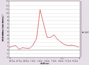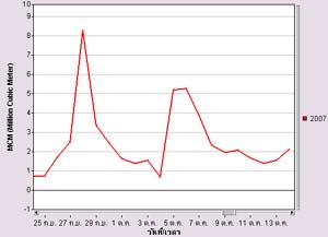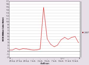 พบว่า ในช่วงที่เกิดพายุ "เลกิมา" หรือช่วงต้นเดือนตุลาคม 50 ปริมาณฝนสะสม