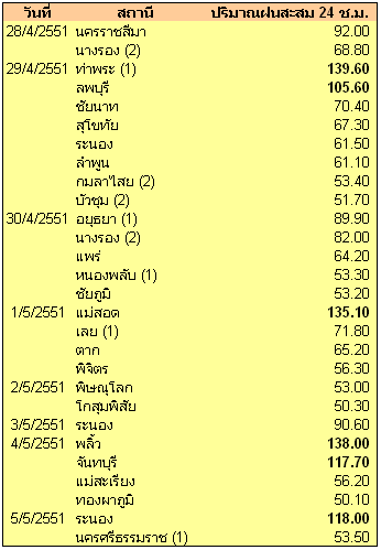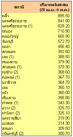 | ปริมาณฝนจากสถานีตรวจวัดกรมอุตุนิยมวิทยา | ||||