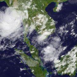 | จากภาพถ่ายดาวเทียม GOES-9 จะเห็นได้ว่าตั้งแต่วันที่ 27 เม.ย. บริเวณฝั่งตะวันตกของไทยเริ่มมีกลุ่มเมฆค่อนข้างมาก อันเป็นผลมาจากพายุไซโคลน "นาร์กีส" ดูรายละเอียดเพิ่มเติม |