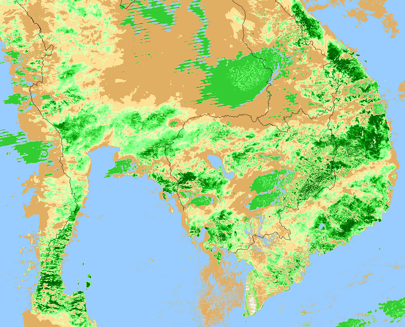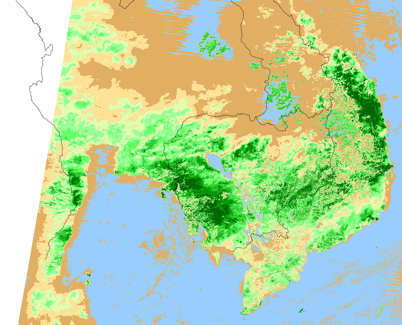 | ภาพค่าดรรชนีพืชพรรณจากภาพถ่ายดาวเทียม TERRA และ AQUA | ||||||||