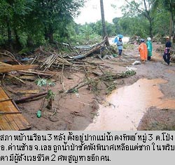 หากไม่มีฝนตกลงมาซ้ำเติมอีกการกู้ภัยก็จะทำได้สะดวก นอกจากนี้กระแสน้ำยังได้พัดเอาสวะและต้นไม้ลงมาด้วย น้ำป่าถล่ม 2 จว. ตาย 4 หายอีก 3 [ไทยรัฐ : 11 ก.ย. 50]