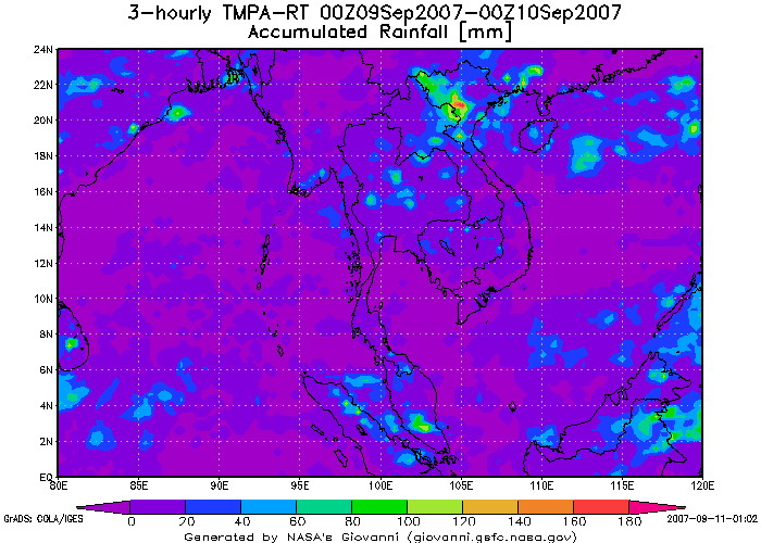มีฝนเกาะกลุ่มเป็นจำนวนมากตั้งแต่คืนวันที่ 9 ก.ย. ต่อเนื่องจนถึงเช้าวันที่