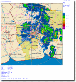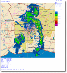 โดยบริเวณวงกลมสีแดงหมายถึงพื้นที่ที่มีฝนตกหนัก จากภาพจะพบว่าในช่วง 7.00