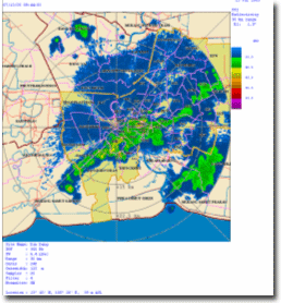 | ภาพเรดาร์ จากระบบเครือข่ายของกรมอุตุนิยมวิทยา (เรดาห์ดอนเืมือง)