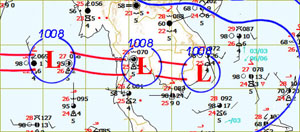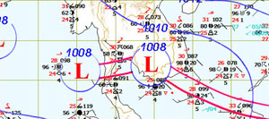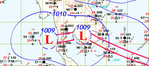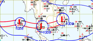 จากภาพถ่ายดาวเทียม GOES-9 จะเห็นได้ว่าในวันที่ 30 มีกลุ่มเมฆค่อนข้างหนาปกคลุมบริเวณอ่าวไทย ภาคตะวันออก กรุงเทพมหานครและปริมณฑล ทำให้เกิดฝนตกหนักในหลายบริเวณ ดูรายละเอียดเพิ่มเติม |