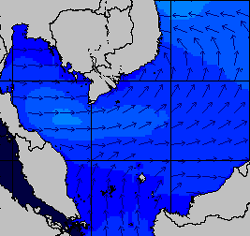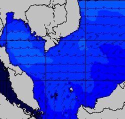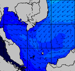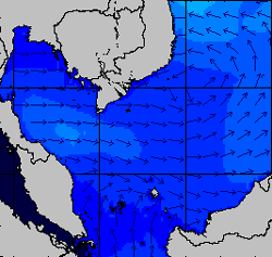 | จากแผนภาพแสดงความสูงของคลื่นตั้งแต่วันที่ 28-31 ต.ค. จะเห็นว่าความสูงของคลื่นเคลื่อนตัวเข้าสู่อ่าวไทยแต่อยู่ที่ระดับ 1-2 เมตร เท่านั้น ดูรายละเอียดเพิ่มเติม |