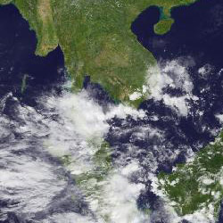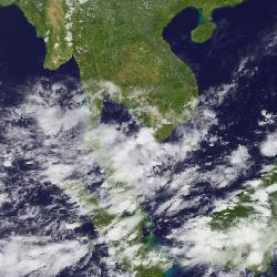 ตุลาคม ในบริเวณจังหวัด ชุมพร สุราษฎร์ธานี ระนอง นครศรีธรรมราช ที่มีกลุ่มเมฆค่อนข้างหนากว่าช่วงวันอื่น