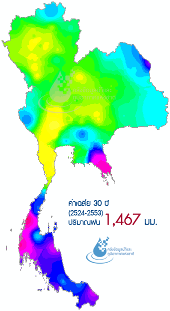 แผนภาพแสดงการกระจายตัวของฝนปริมาณฝนเฉลี่ย 30 ปี (2524-2553)