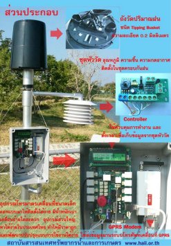 - อุปกรณควบคุมการทํางาน และสงขอมูล เปนหัวใจหลักของการทํางาน โดยมีไมโครคอนโทลเลอรเปนอุปกรณควบคุมการทํางานทั้งหมด พัฒนาและเขียนโปรแกรมขึ้นใชเอง ทําใหสามารถปรับแตง แกไขระบบไดตามตองการ โดยมีระบบนาฬิกาของเครื่อง บันทึกและสั่งงานตามที่กําหนดไดอีกทั้งยังสงขอมูลในรูปแบบมาตรฐาน RS232 ไปยังอุปกรณสงขอมูลผาน GPRS และยังสามารถบันทึกขอมูลไวใน Flash Memory ของเครื่อง เพื่อผูใชสามารถถอด Memory ไปอานขอมูลภายหลังได ลักษณะการทํางานของชุดควบคุม คือ เปนการตั้งคาชวงเวลาที่ตองการวัดขอมูลและสงขอมูลทันทีเมื่อถึงเวลาที่กําหนด ตั้งแต ทุก นาที ทุก 10 นาที ทุกชั่วโมง หรือ ทุกวัน โดยขอมูลที่ไดอยูในรูปของ ขอความ สงขอมูลไปยังเครื่องคอมพิวเตอรมขาย เพื่อประมวลผลและแสดงผลไดทันที โดยมีคาเวลาที่ตรวจวัดกํากับไว้เสมอ ผูใชสามารถนําเครื่องคอมพิวเตอรมาเชื่อมตอกับอุปกรณเพื่อดูคาขอมูลไดโดยตรง โดยไมตองใชโปรแกรมพิเศษและยังสามารถนําขอมูลไปใชงานไดทันที ในรูปของตารางหรือกราฟ จากโปรแกรม Excel อีกดวย
