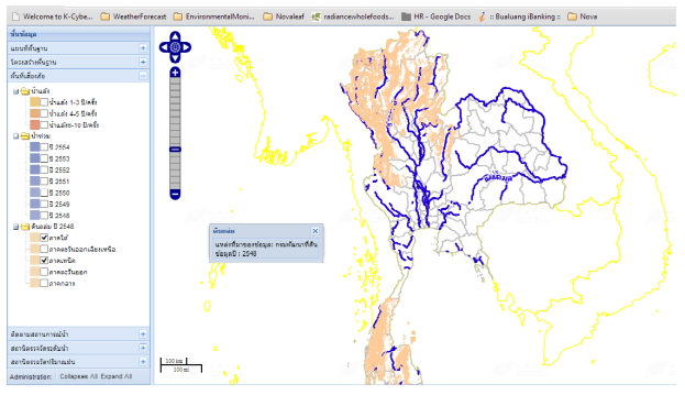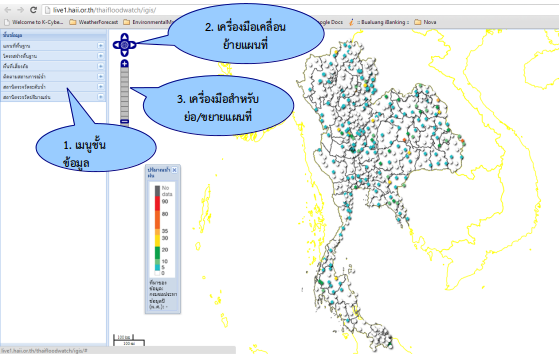 การใช้งานระบบสารสนเทศภูมิศาสตร์ติดตามสภาพอากาศผ่านเว็บไซต์ www.thaiwater.net